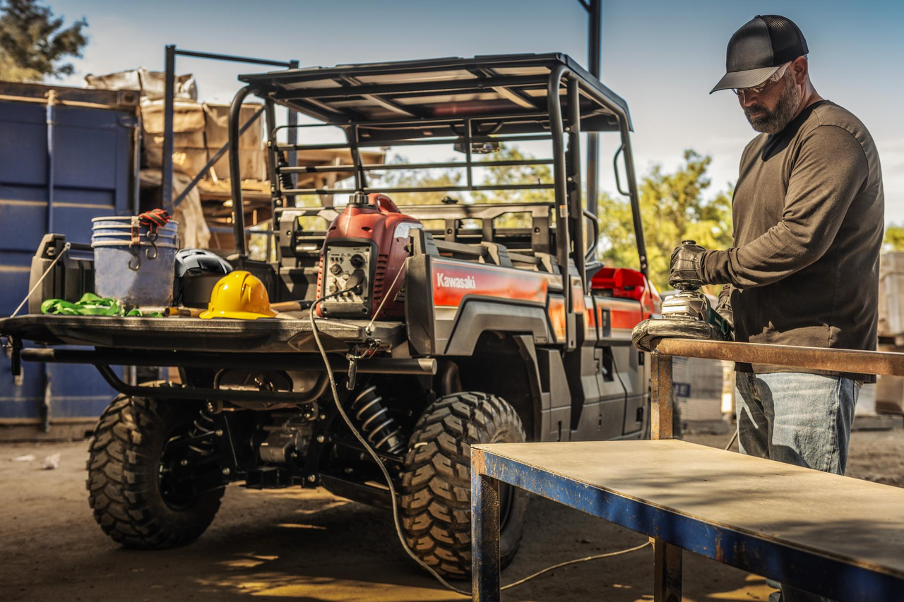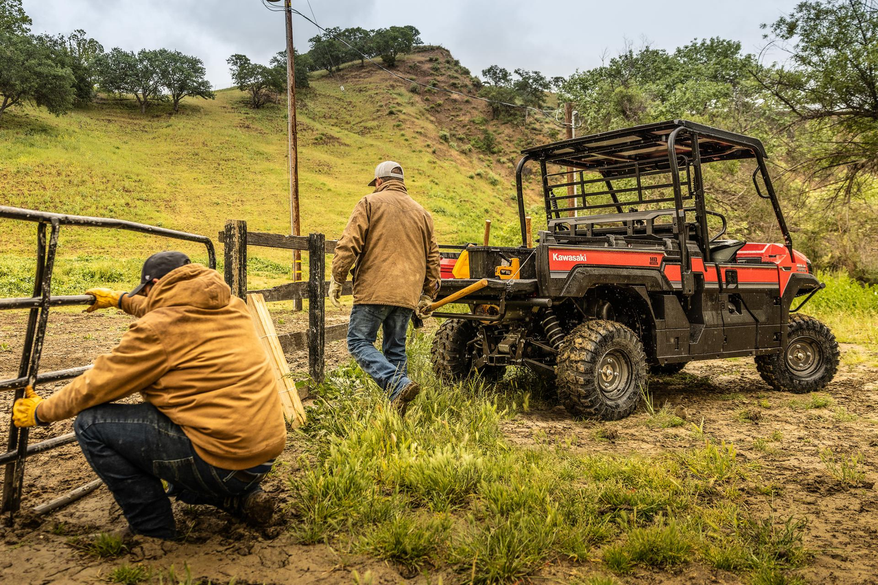 Class-leading comfort has been a hallmark of Kawasaki’s hardworking side x sides. The MULE PRO-FX 1000 delivers on that front, with the new, longer-travel suspension further contributing to ride comfort offered by the composed chassis and roomy interior. Creature comforts like EPS, tilt-steering, handy storage spaces and numerous cup holders are complemented by improved maintenance-related elements.