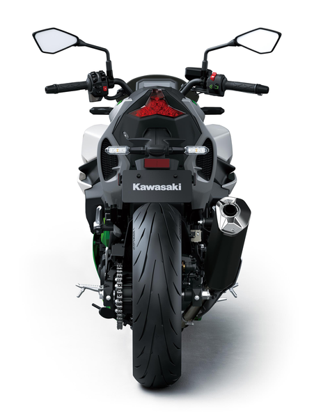 Silver and Lime Green with a semi-matte finish, the Ninja 7 Hybrid’s colour & graphics contribute a fresh, futuristic image for Kawasaki’s HEV models.