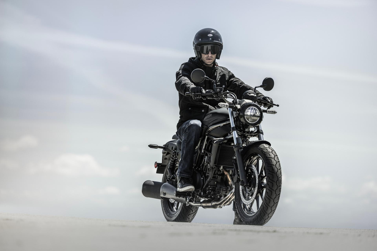 Eliminator 500 - Denne motorcykel bryder med konventionerne gennem sit slanke, lave design og det ergonomiske, komfortable sæde. Det tidløse ydre forenes med moderne teknologi for optimal køreoplevelse. Kombineret med let og nem håndtering er dette en model der er svær at overse. Tænk ikke for meget over det – Just Ride