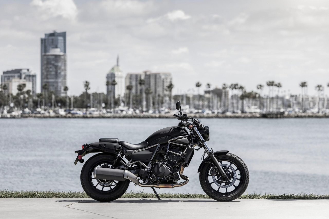 A modern reinterpretation of the long and low style of the original Eliminator is complemented by a versatility that lends itself to any lifestyle. Horizontal lines that draw the eye from front to rear, the low seat, and low, flat handlebar hint at the new Eliminator’s active riding potential and a light-footed maneuverability, as if to be able to glide lightly over the ground.
