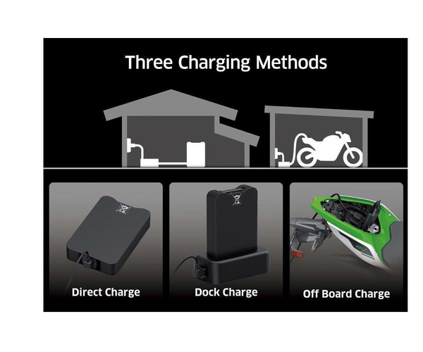 When connected to the bike through the plug-in charge cable kit, one charger can charge both batteries at the same time because of the battery management system in the bike.