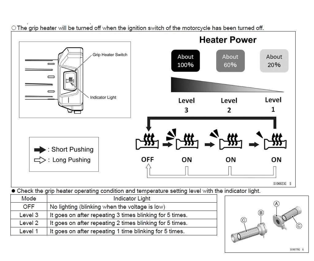 Help keep your hands warm on the road with a grip heater system ergonomically designed to minimize added bulk to the grip.