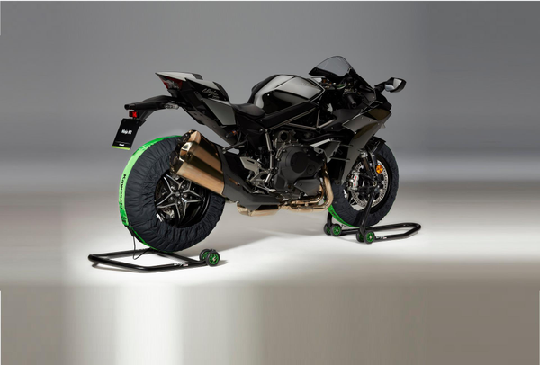Tire warmer sets similar to the ones used by the KRT superbike team. Tire warmers with carbon-fibre heating technology. This gives fast heating of tire and rim without local overheating and a constant temperature. The sides of the tire warmer reach far over the rim flange keep the heat inside. This way the pressure of the tyre is stabilized. A high precision thermostat ensures a target temperature of 80-85 °C.