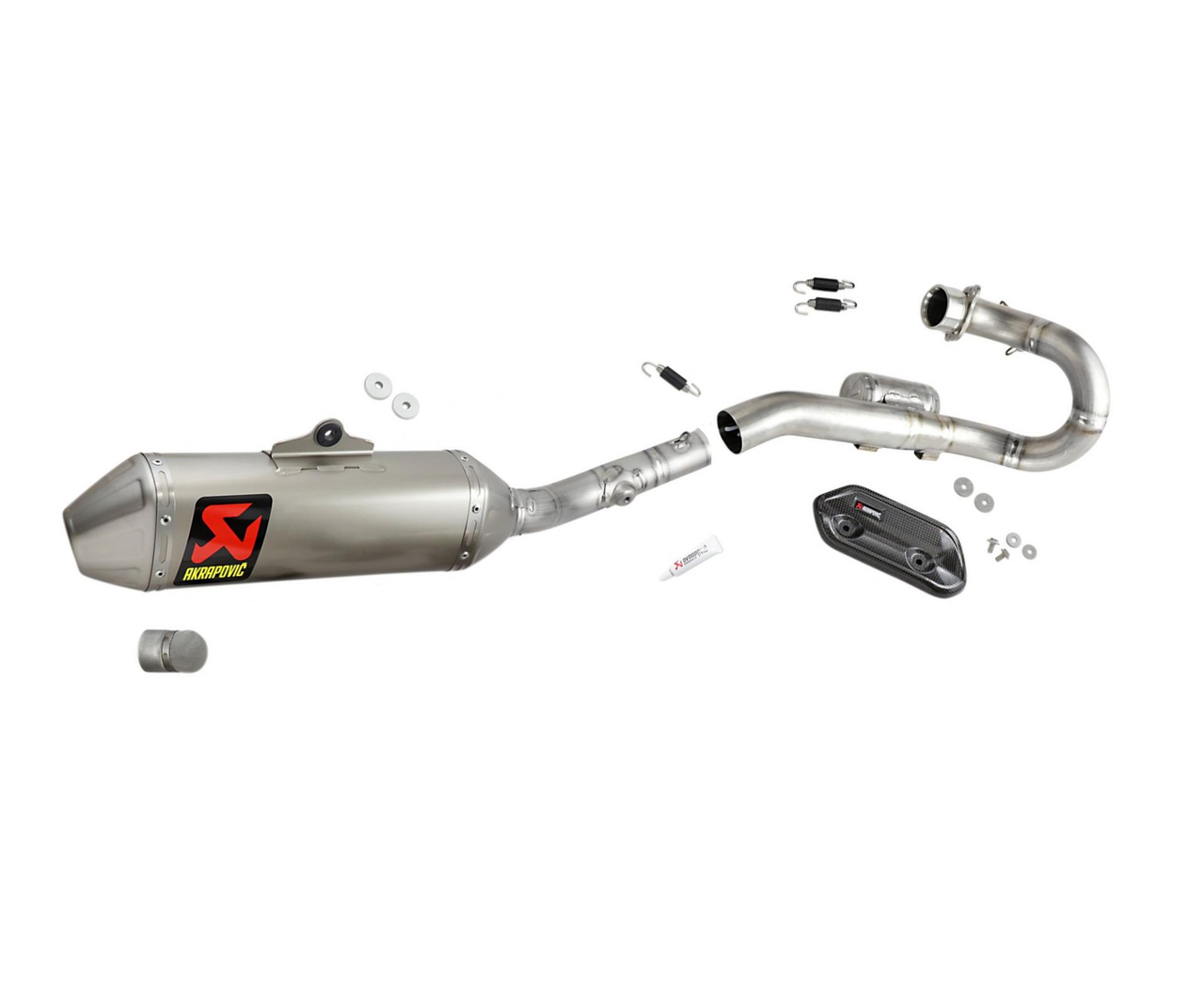 Akrapovič lightweight Evolution Line full exhaust system with titanium tubes and a titanium muffler.